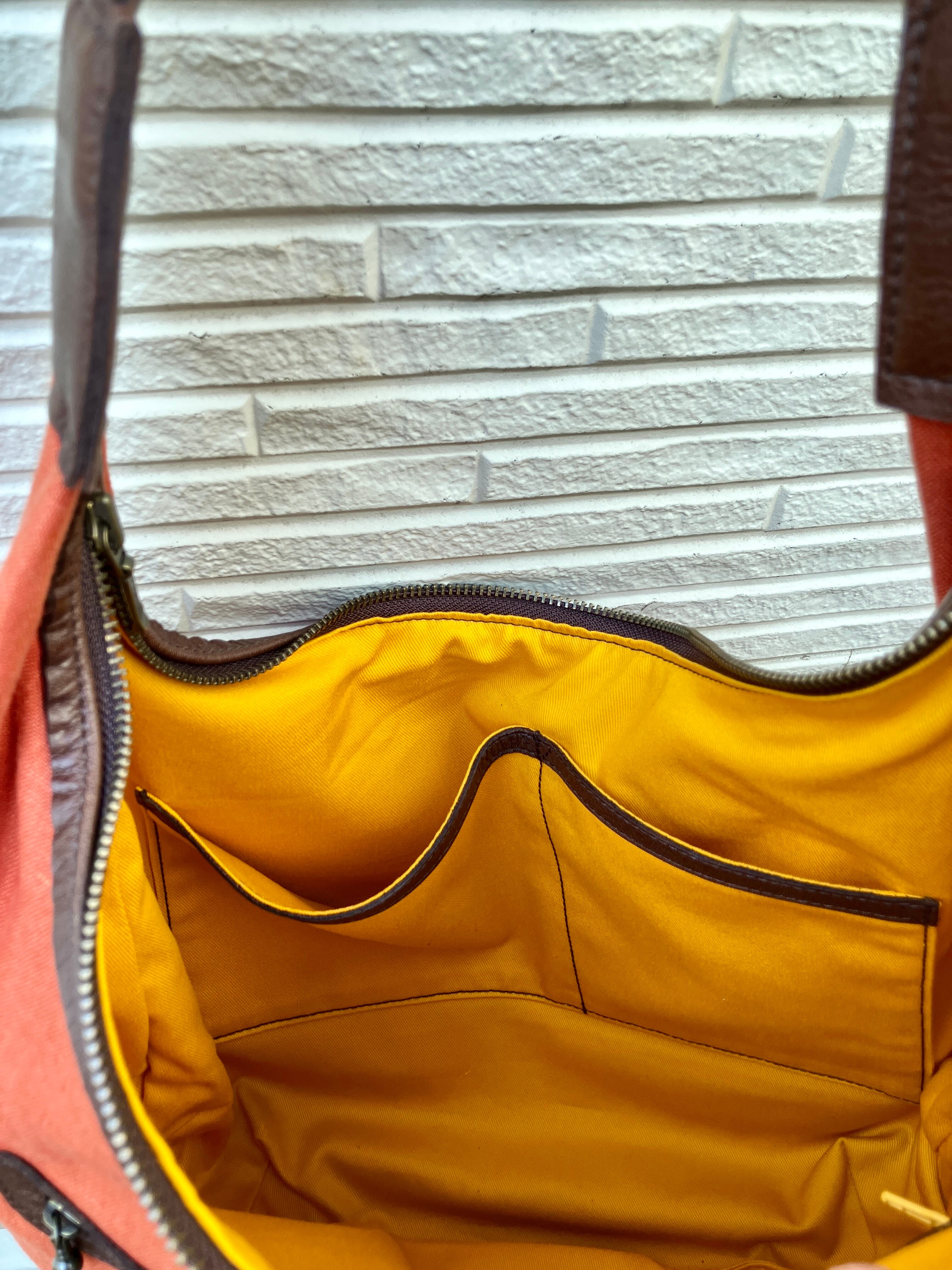 内面にはオープンポケットが2つと、ファスナーポケットが1つ。細かく収納分けができます。