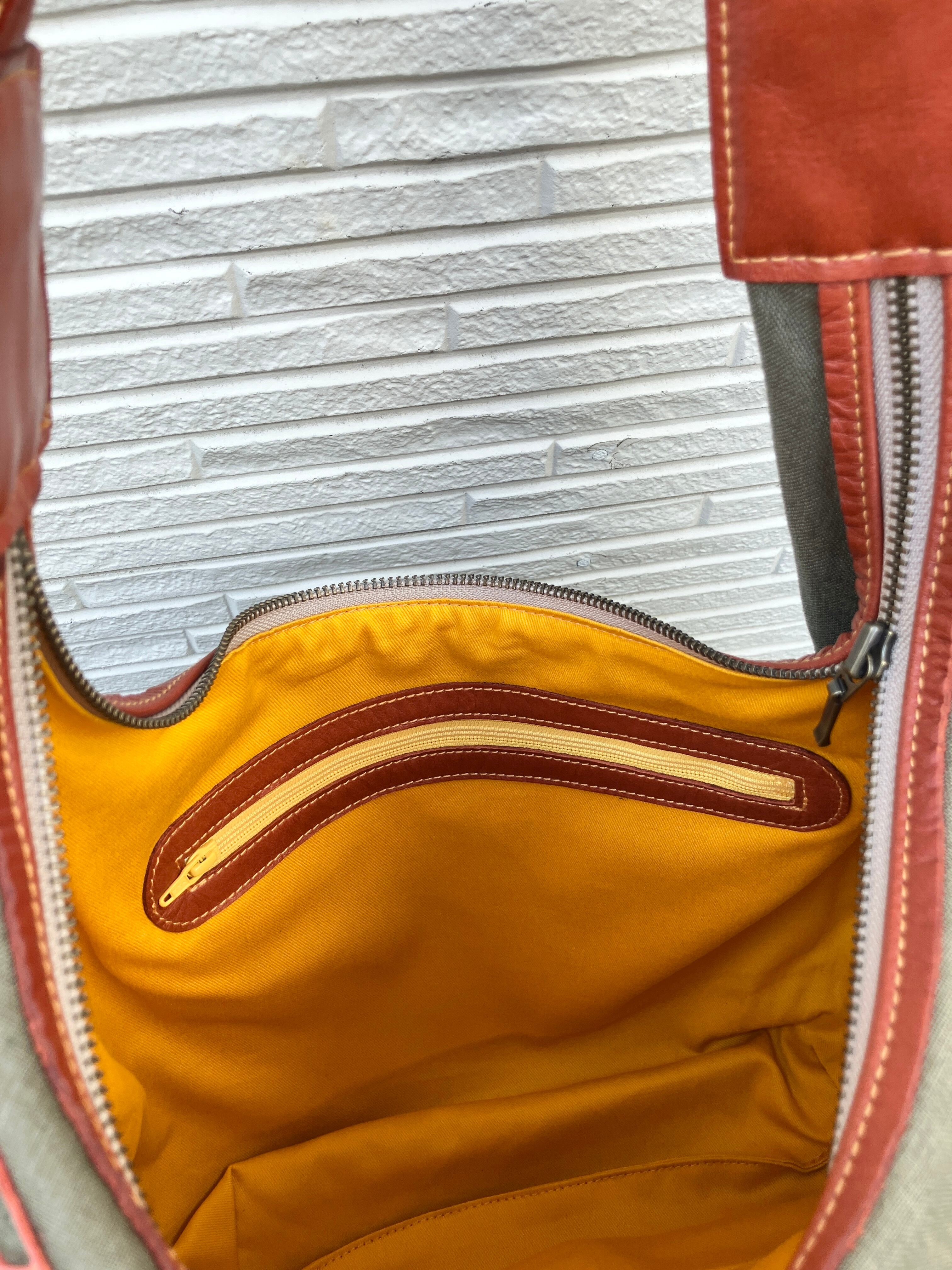 内面にはオープンポケットが2つと、ファスナーポケットが1つ。細かく収納分けができます。