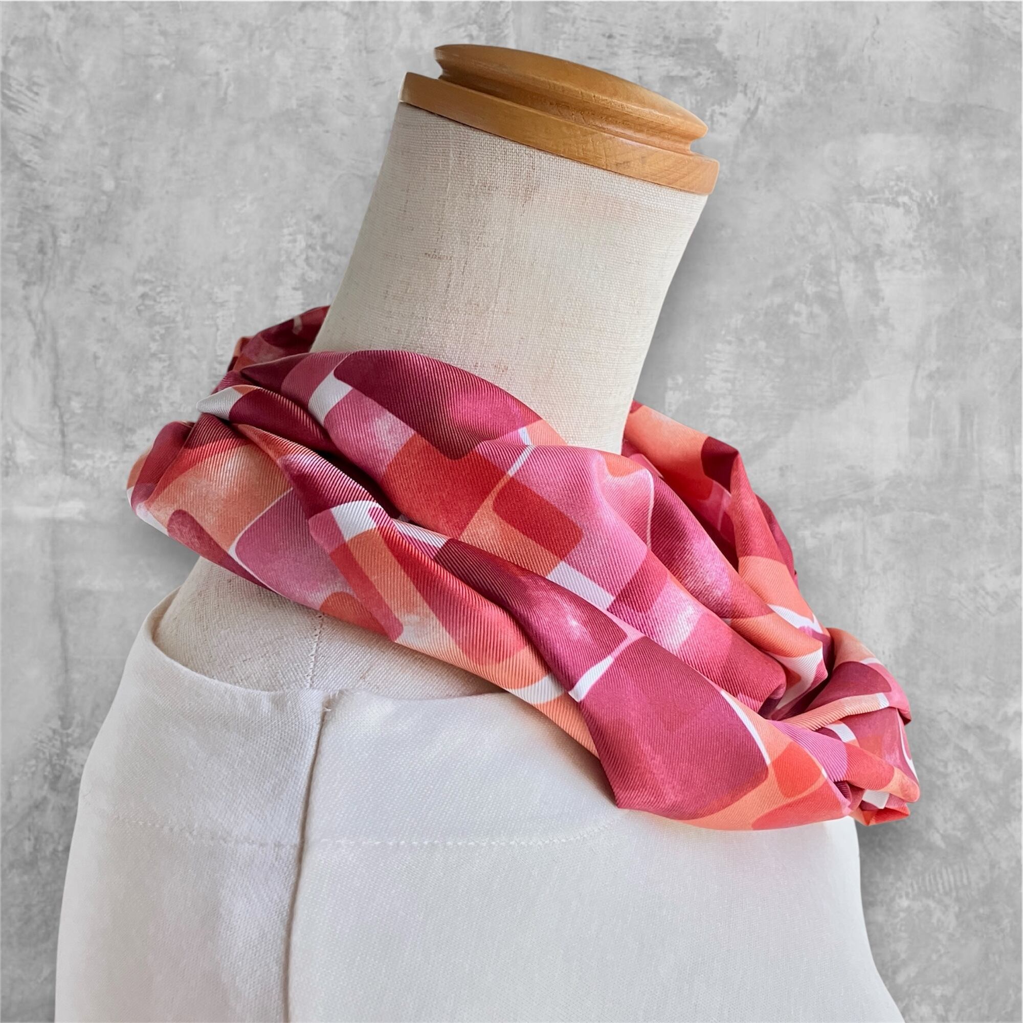 イタリア製のスカーフ生地を使用し、お顔周りを華やかにしてくれます。