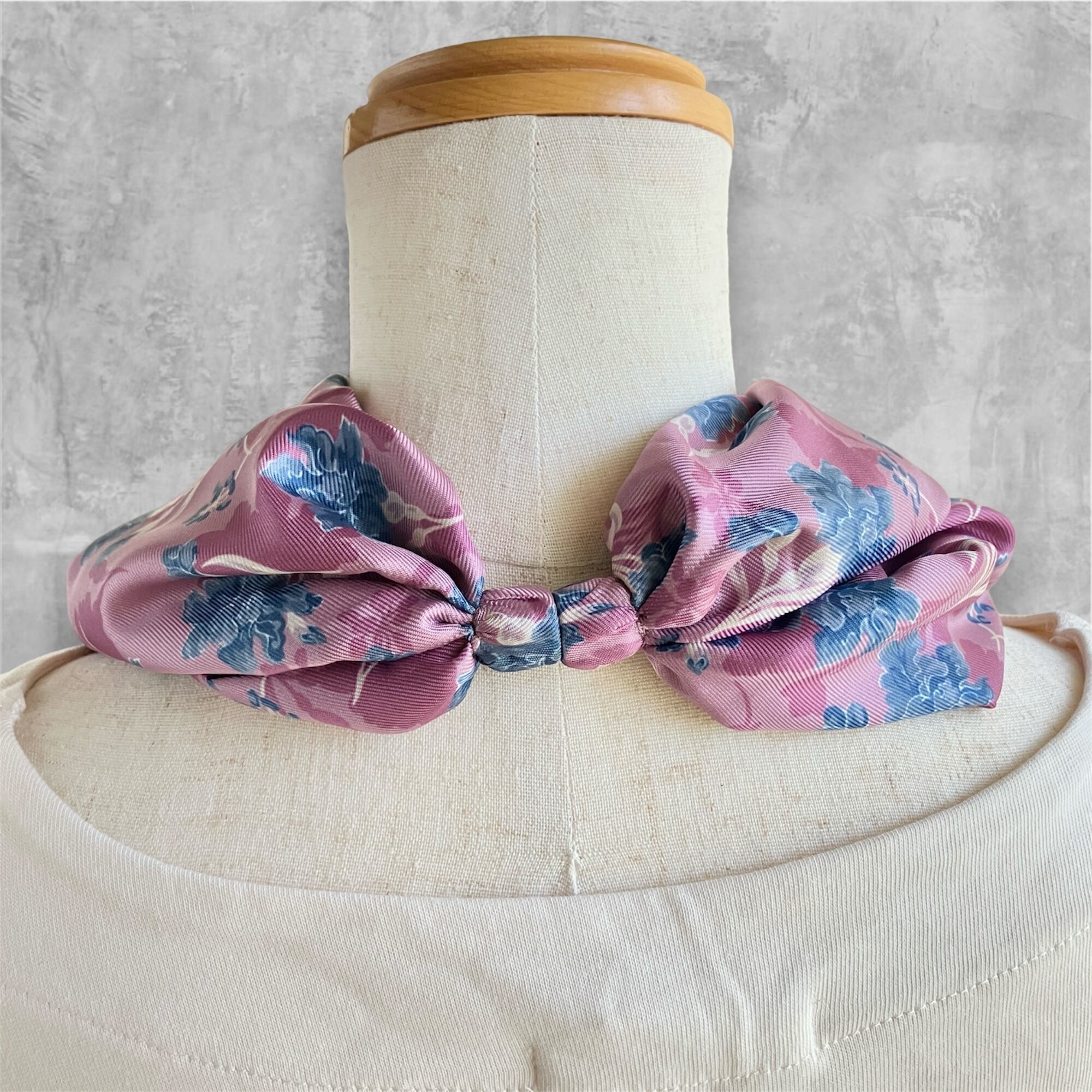 イタリア製のスカーフ生地を使用し、お顔周りを華やかにしてくれます。