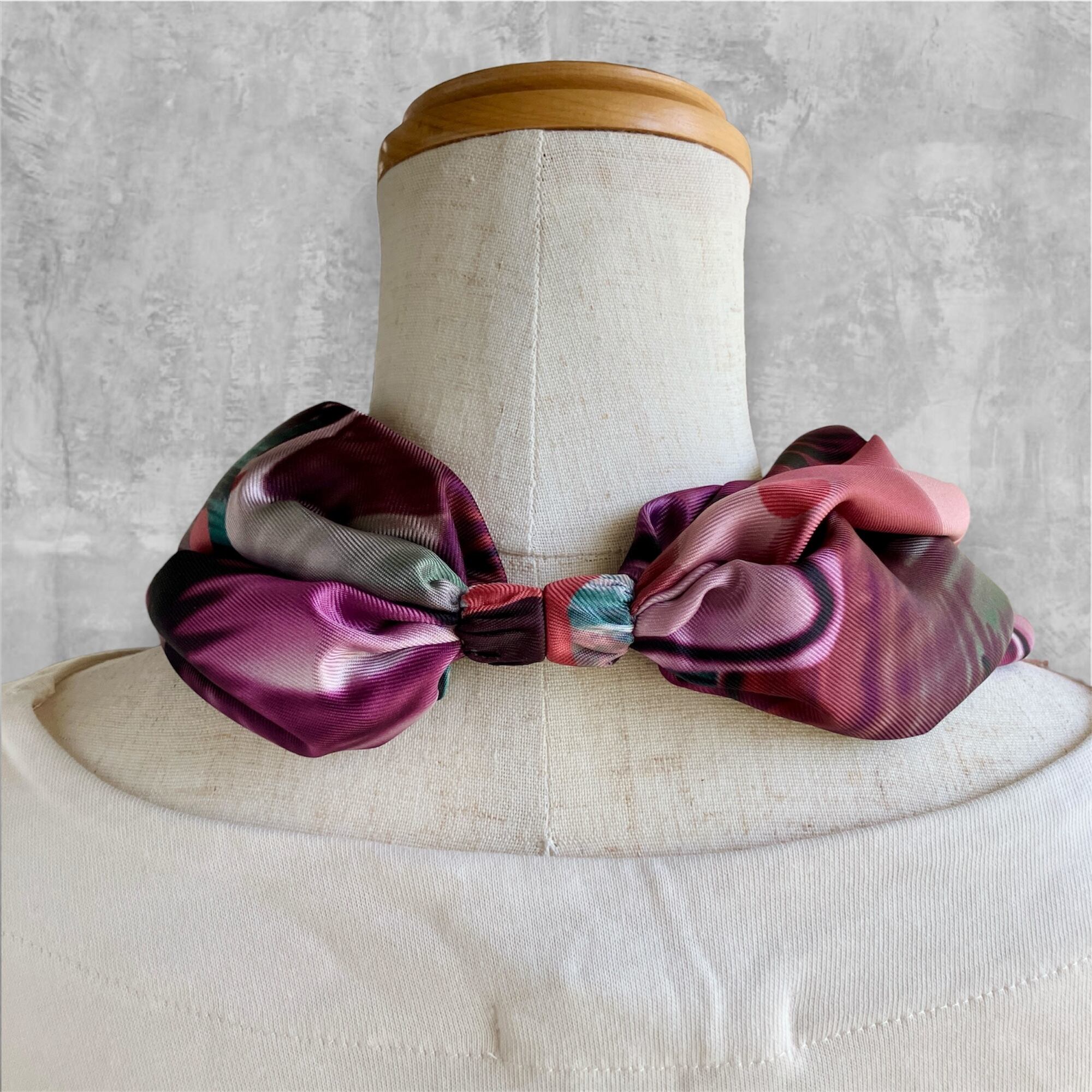 イタリア製のスカーフ生地を使用し、お顔周りを華やかにしてくれます。