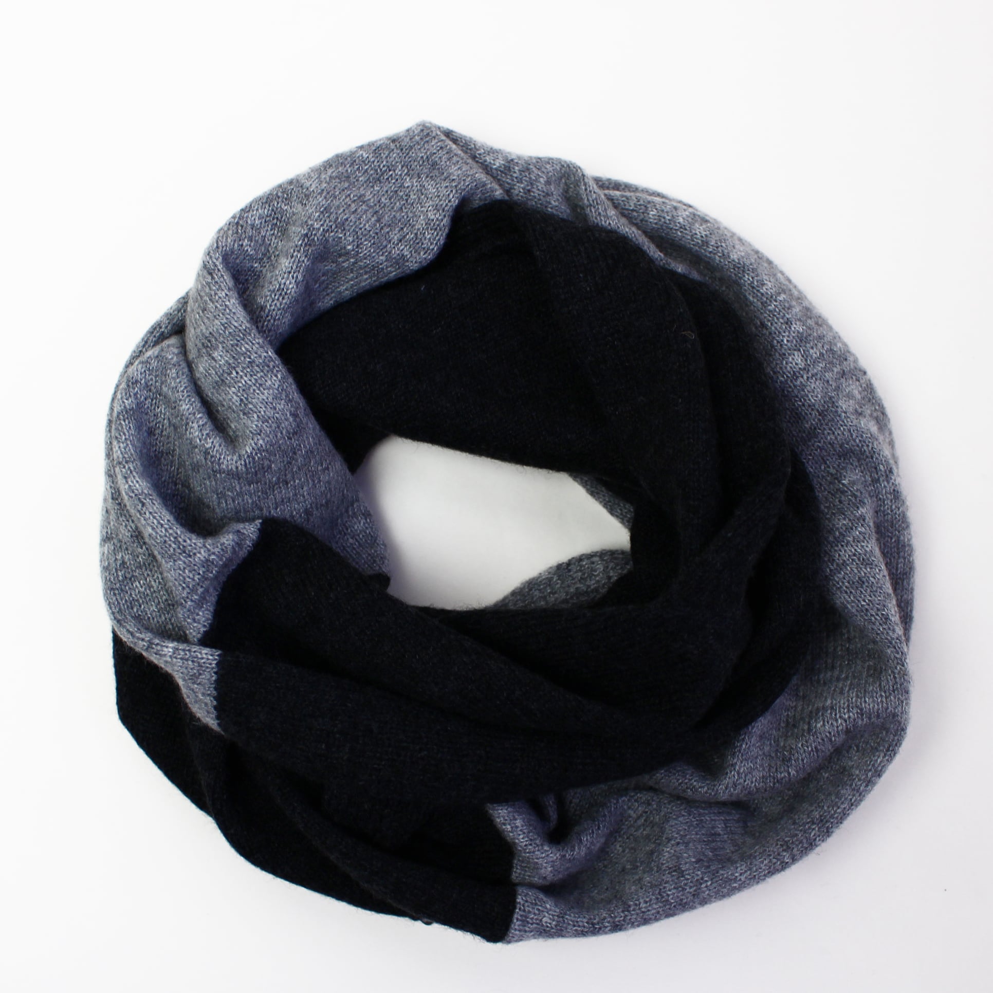[LoroPianaカシミヤ糸100%] スヌードマフラー グレー×ダークグレー
