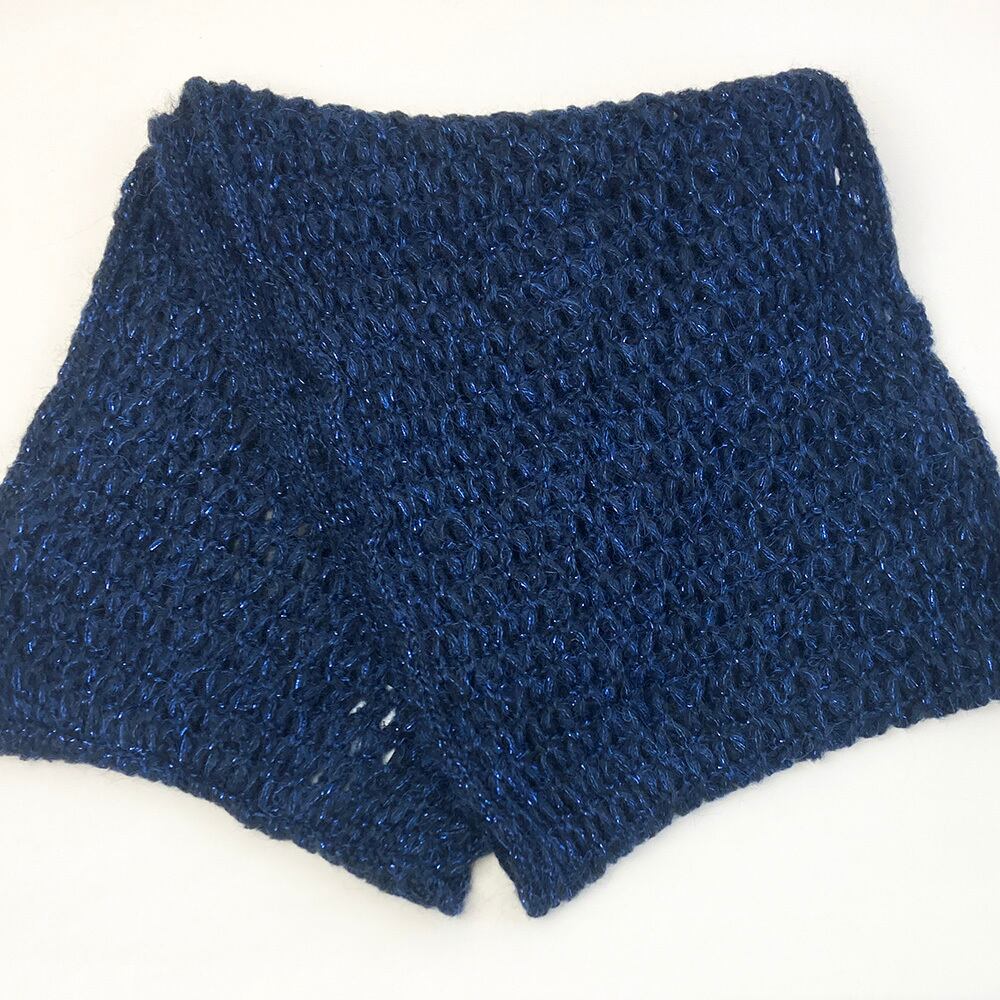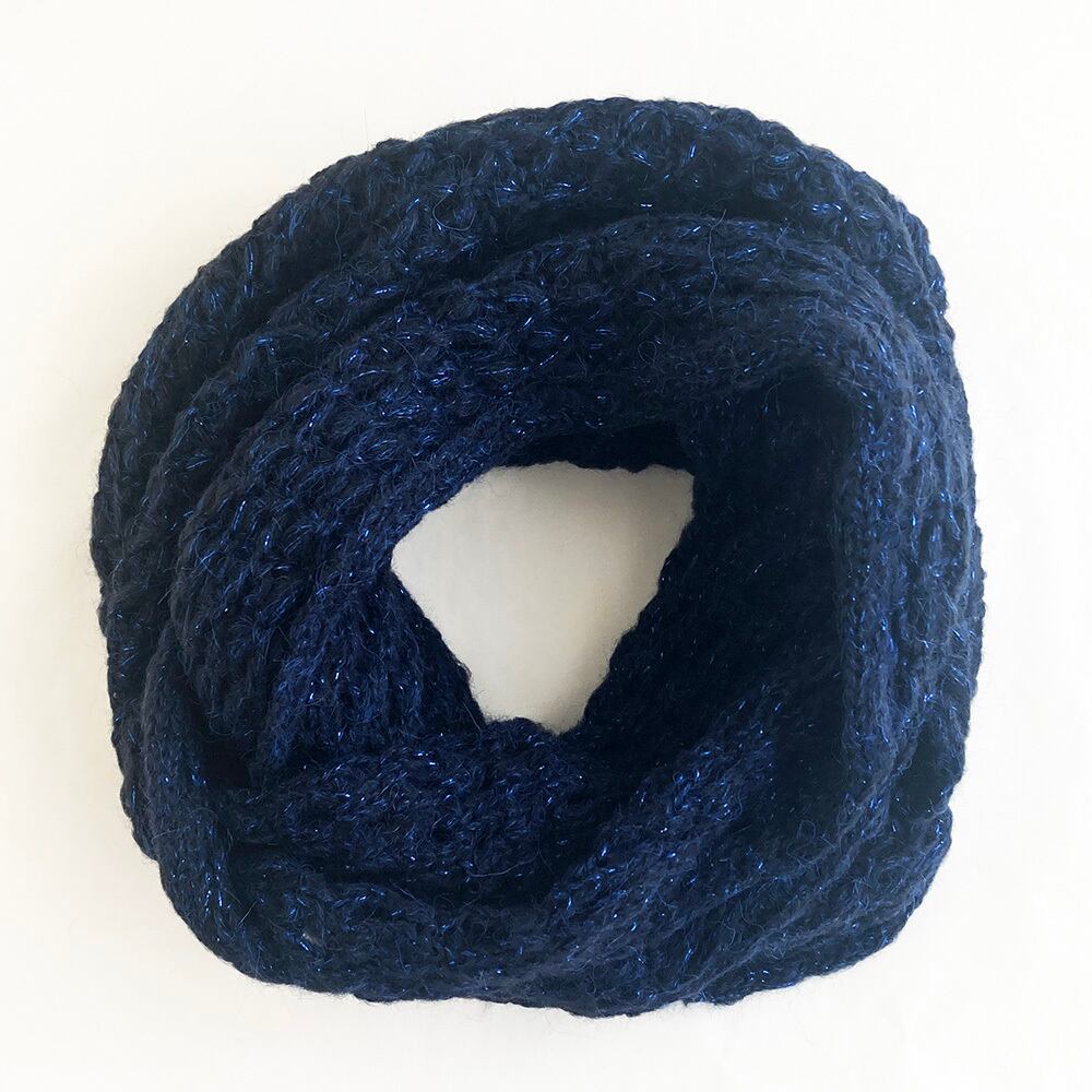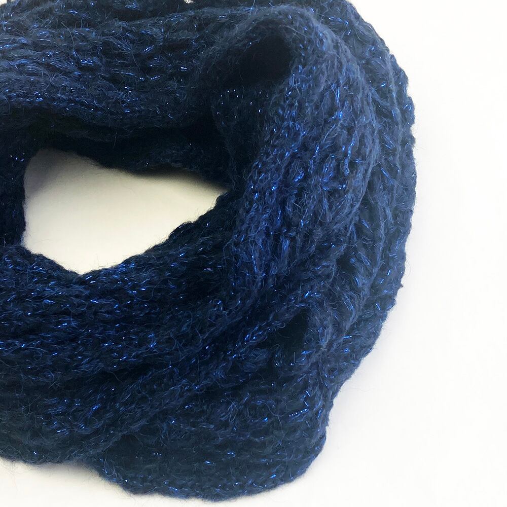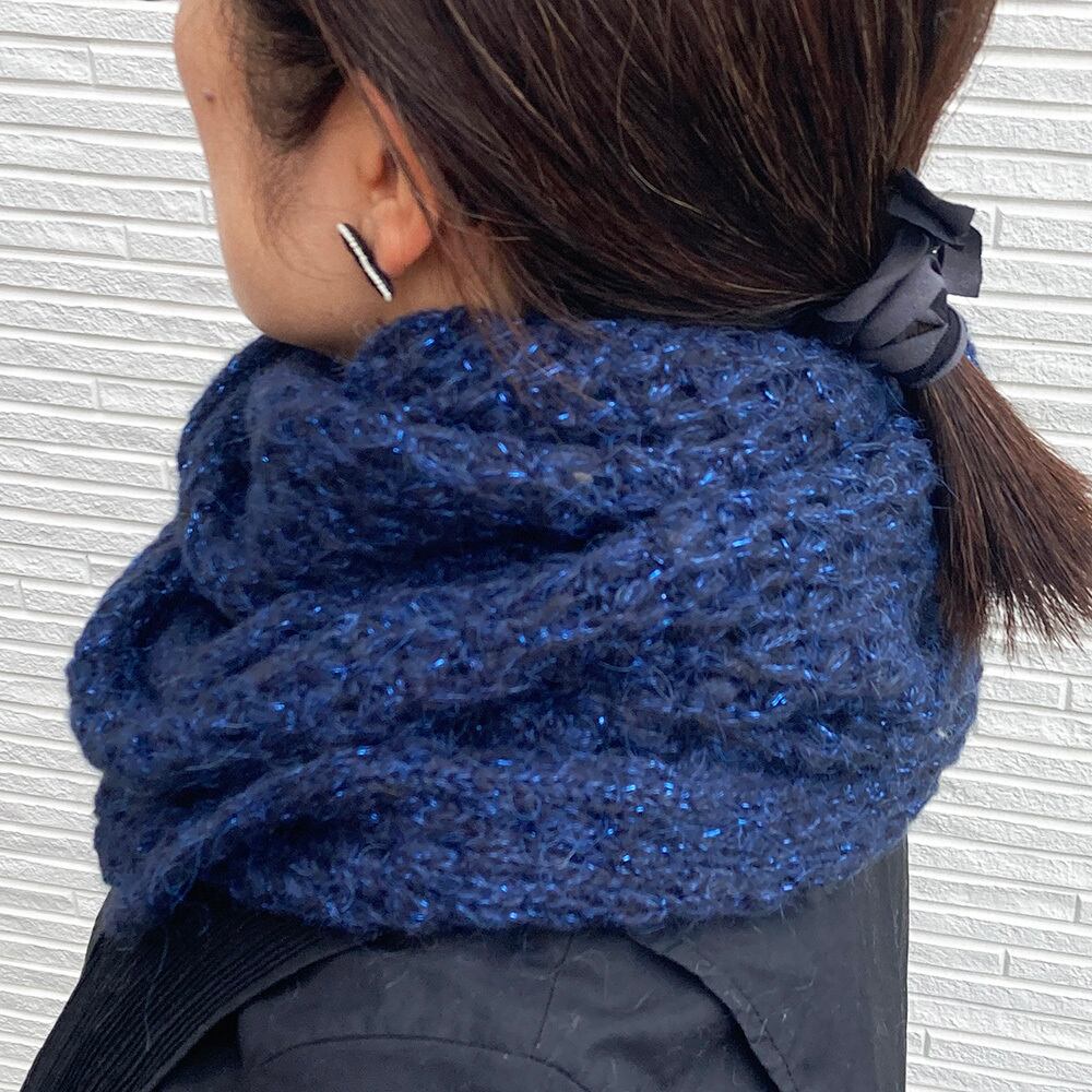 ざっくりと編まれた柔らかな毛糸に、上品なラメ糸を織り込んだ、さりげなくおしゃれなデザインです。