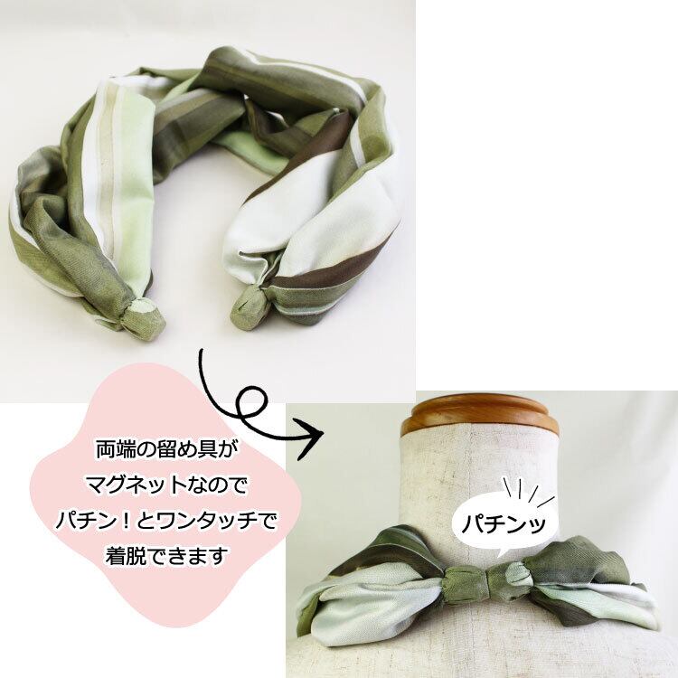 留め具がマグネットになっている、簡単ワンタッチスカーフです。
