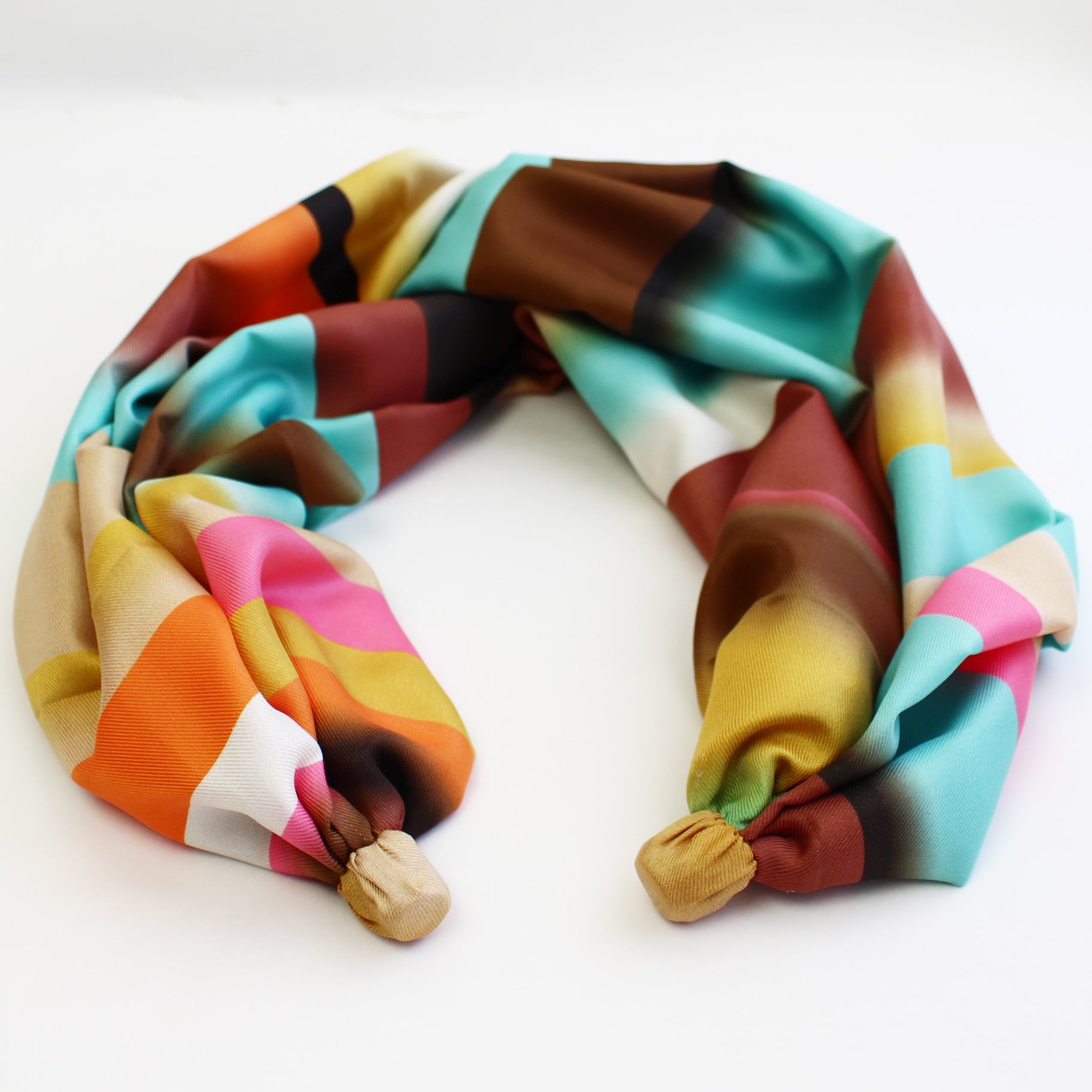 イタリア製のスカーフ生地を使用し、お顔周りを華やかにしてくれます。