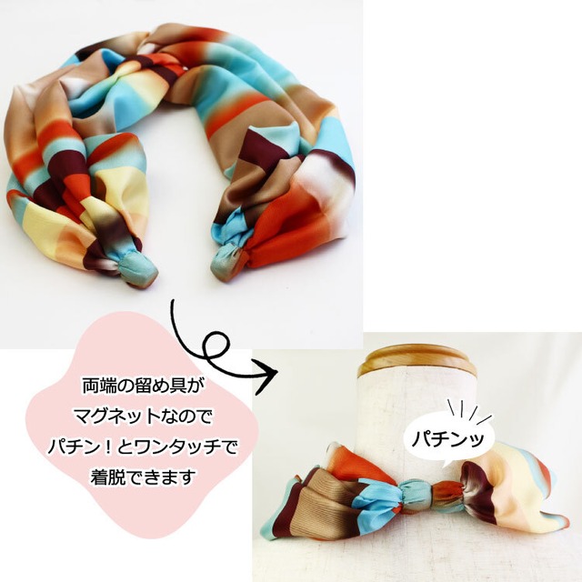 留め具がマグネットになっている、簡単ワンタッチスカーフです。